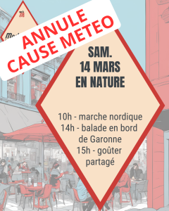 – une balade pour découvrir les bords de Garonne avec Simone, RDV à 14h place Job